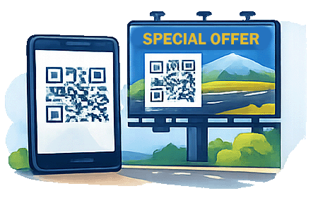 Viewers scan a QR code or visit a short link from TV, radio, billboards, print, or engage directly through digital banners served via any ad server or DSP.